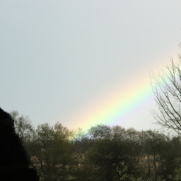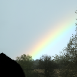 En dag gik Emma ud på en af hendes eventyrlystne vandreture, da hun pludselig så noget forbløffende. En stor og skinnende regnbue var dukket op på himlen, og den så ud til at strække sig hele vejen ned til jorden.